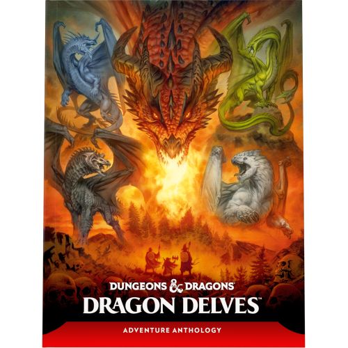 Meet the dragons of D&D in Dragon Delves, a collection of ten dragon-themed adventures for characters level 1 through 12. Featuring artwork rendered in ten unique styles, these ready-to-play adventures include streamlined prep and quick start guides for Dungeon Masters. Delve into mysterious dungeons, explore captivating fantasy locations, and come face to face with all the chromatic and metallic dragons, each with unique temperaments, alignments, and magic.