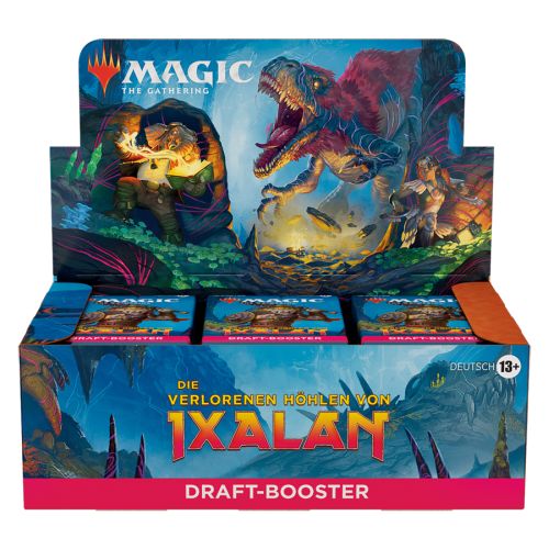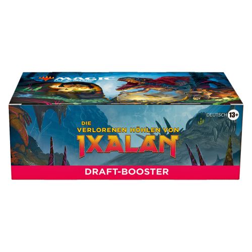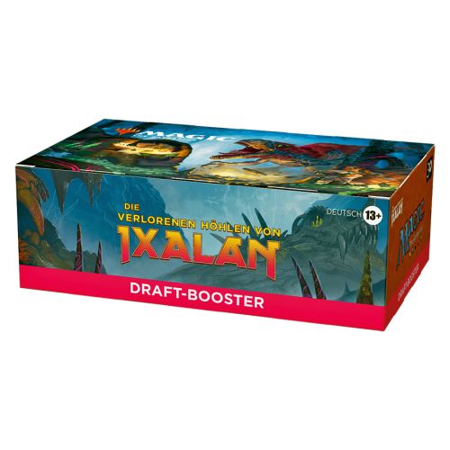 Erkunde die Tiefen der Höhlen unter Ixalan in einem Wettlauf zu ihrem verborgenen Kern.Wirst du Schätze und Ruhm entdecken oder wird dein Abenteuer in den sicheren Untergang führen?Dieses Die verlorenen Höhlen von Ixalan Draft-Booster-Display enthält 36 Die verlorenen Höhlen von Ixalan Draft-Booster und 1 Schatzhort-Box-Topper-Karte. Jeder Draft-Booster enthält 15 Karten, darunter 1 Karte der Seltenheit selten oder höher, 3-4 nicht ganz so häufige Karten, 9-10 häufige Karten und 1 Länderkarte (eine großflächig illustrierte Showcase-Länderkarte in 30 % der Booster). Sagenhaft seltener Foil-Planeswalker ohne Rand in < 1 % der Booster. In 33 % der Booster ersetzt eine traditionelle Foilkarte zufälliger Seltenheit eine häufige Karte.