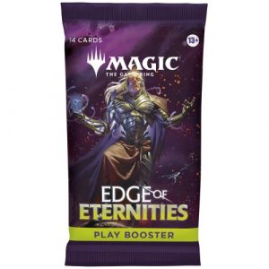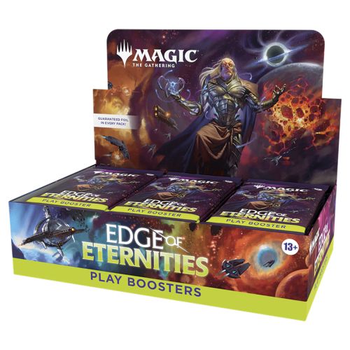 At the edge of the known Multiverse, a star system teeters on the brink of disaster. Chart a course through Sothera and explore distant planets, wield dazzling magic, and wage war with alien factions. Just steer clear of the unstable supervoid at the center of the system—unless you choose to harness the vast chaotic energies within! This Edge of Eternities Play Booster Box containing 30 Play Boosters, perfect for both Limited play and opening packs just for fun. Each Play Booster contains 14 Magic: The Gathering cards and 1 Token, including 1–4 cards of rarity Rare or higher and 3–5 Uncommon, 6–9 Common, and 1 Land cards. 1 card of any rarity is Traditional Foil. Foil Borderless Mythic in <1% of boosters. A Traditional Foil Land replaces a Land in 20% of boosters.