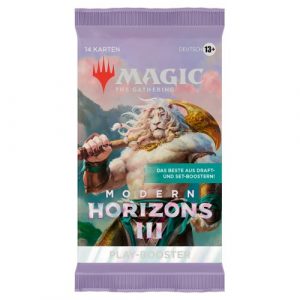 Dieses Modern Horizons 3 Play-Booster-Display enthält 36 Play-Booster. Jeder Play-Booster enthält 14 Magic: The Gathering Karten und 1 Spielstein-/Werbekarte, Hilfekarte oder Artwork-Karte. (In 30 % der Booster ist eine normale Artwork-Karte enthalten und in 5 % der Booster eine Signatur-Artwork-Karte mit Promo-Aufdruck.) In jedem Booster findest du eine Kombination aus 1-5 Karten der Seltenheit selten oder höher, 3-6 nicht ganz so häufigen Karten, 5-9 häufigen Karten und 0-1 Länderkarten. Eine Karte beliebiger Seltenheit ist eine traditionelle Foilkarte. Foil-Fetchland ohne Rand in < 1 % der Booster. Land als traditionelle Foilkarte in 20 % der Booster.