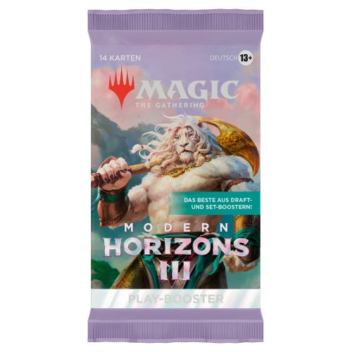 - KANN ARTWORK-KARTEN ENTHALTEN, EXKLUSIV FÜR PLAY-BOOSTER – In einigen Play-Boostern steckt auch eine Artwork-Karte mit einer Illustration aus dem Set Modern Horizons 3, manchmal sogar mit einer Foil-Signatur des Künstlers.