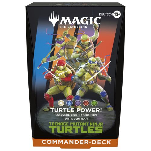 Entfessle mutagenes Chaos und kämpfe gegen Freund und Feind in Commander, dem beliebtesten Multiplayer-Format von Magic. Tritt mit Leonardo und einem Partner – Leonardo, Donatello, Raphael, Michelangelo oder Splinter – an und entwickle deinen ganz individuellen Spiel-Style. Jeder im Team hilft dir auf unterschiedliche Weise, dein Ziel zu erreichen – häufe +1/+1-Marken an und lass deine Kreaturen zur furchterregendsten Truppe der Welt werden!